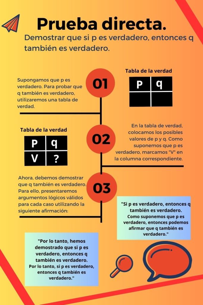 Prueba directa: Es la técnica más común y directa para demostrar una afirmación. Consiste en asumir que la afirmación es verdadera y demostrar paso a paso, utilizando reglas lógicas y propiedades matemáticas, que se llega a una conclusión lógica que confirma la afirmación.